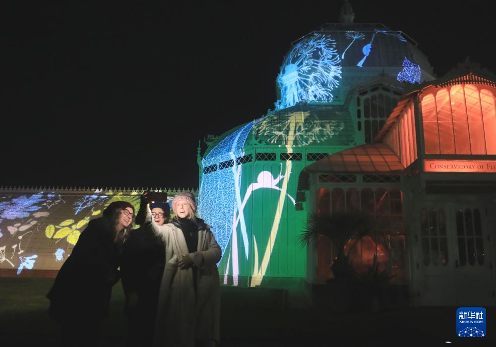 美国旧金山:金门公园举行温室灯光秀-新华网
