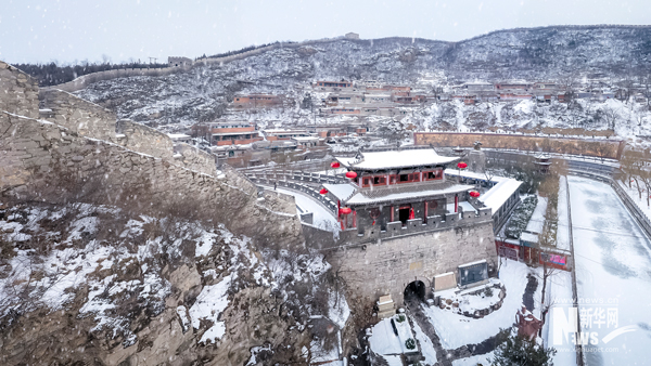 俯瞰暴雪過(guò)后的娘子關(guān)全景。古城堡依山傍水,居高臨下,關(guān)門(mén)兩座,護(hù)佑四方。楊東/攝