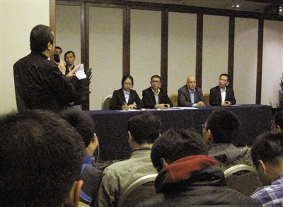 昨日13時40分許,馬航相關(guān)負責人在麗都飯店召開家屬通報會。