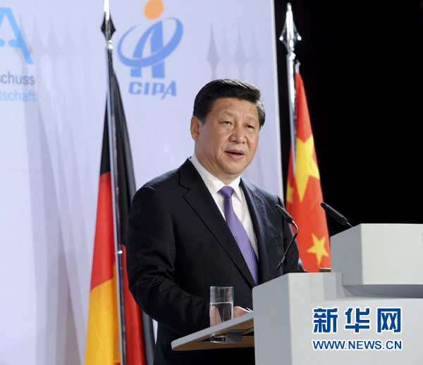 ????習(xí)近平贊賞兩國工商界為推動中德關(guān)系和中歐關(guān)系發(fā)展作出的重要貢獻,表示相信,中德攜起手來,腳踏實地,真誠合作,一定能夠成就兩國人民的美好夢想。