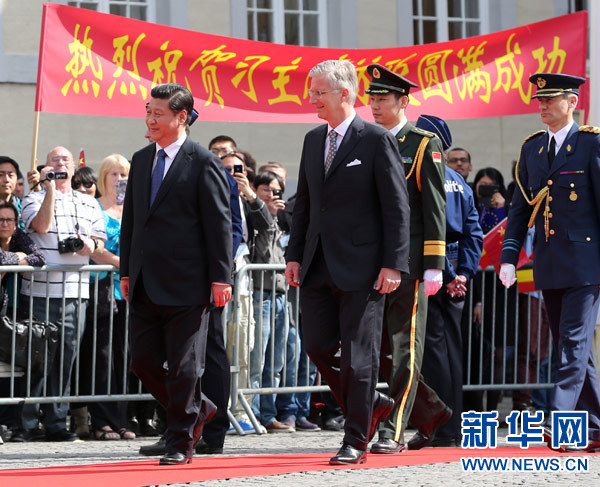 ??? 4月1日,國家主席習(xí)近平離開比利時布魯日市啟程回國。離開前,比利時國王菲利普在布魯日廣場為習(xí)近平舉行隆重歡送儀式。新華社記者龐興雷攝