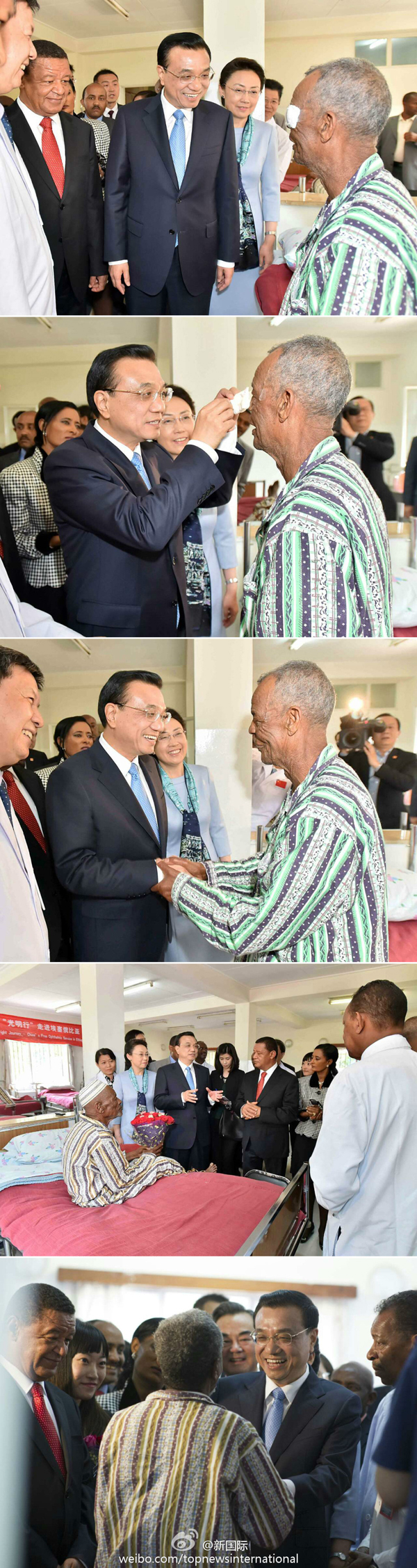 ??? 在親手為埃塞白內障治愈患者揭開眼罩后,李克強說,剛才是象征性動作,背后是中非醫(yī)生付出的艱辛和巨大努力,你們一起把光明撒向埃塞普通百姓,是光明使者和真正的天使。