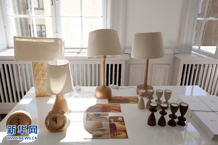 圖為10日所拍攝的“融?工藝設(shè)計生活”設(shè)計展上用竹條編織的臺燈。