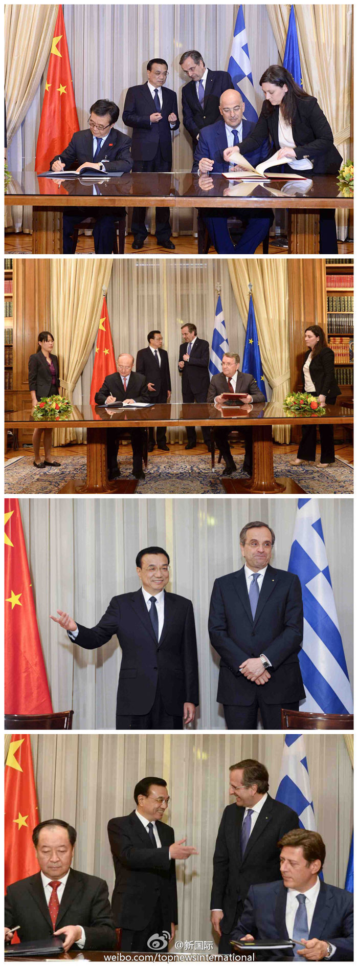 ????新華網(wǎng)北京6月20日電 據(jù)新華社“新國際”微博,報(bào)道當(dāng)?shù)貢r間19日下午,國務(wù)院總理李克強(qiáng)與希臘總理薩馬拉斯舉行會談后,兩國總理共同見證了有關(guān)雙邊文化、經(jīng)貿(mào)、投資、海洋、防災(zāi)、基礎(chǔ)設(shè)施建設(shè)等領(lǐng)域合作文件的簽署。