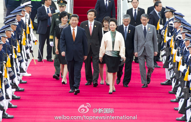 ??? 新華網(wǎng)北京7月3日電 據(jù)新華社“新國際”微博報道,禮兵注目,禮炮鳴響。3日中午,習近平主席的專機穩(wěn)穩(wěn)降落在首爾城南機場,習近平和夫人彭麗媛走下舷梯,受到韓方熱烈歡迎。這是習近平擔任國家主席后首次訪韓。2005年、2009年,他曾兩次訪問韓國。?