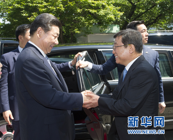????7月4日,國家主席習近平在韓國國立首爾大學發(fā)表題為《共創(chuàng)中韓合作未來 同襄亞洲振興繁榮》的重要演講。這是首爾大學校長吳然天迎接習近平主席。新華社記者 謝環(huán)馳 攝