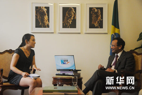 ??? 圖為巴西駐華大使瓦爾德馬爾·卡爾內魯·萊昂(右)接受新華網專訪。新華網記者 劉小軍攝