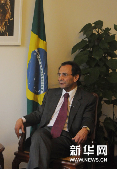 ??? 圖為巴西駐華大使瓦爾德馬爾·卡爾內魯·萊昂(右)接受新華網專訪。新華網記者 劉小軍攝