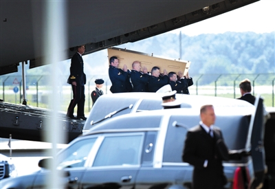 據(jù)美國媒體報道,運輸馬航MH17航班遇難者遺體的軍機分別來自荷蘭和澳大利亞。它們23日中午從哈爾科夫一座機場起飛,前往荷蘭艾恩德霍芬空軍基地。23日下午,這兩架軍機抵達荷蘭艾恩德霍芬空軍基地,荷蘭國王、王后和首相呂特前往機場接機,有國民遇難的10個國家派代表出席,并舉行默哀一分鐘儀式。