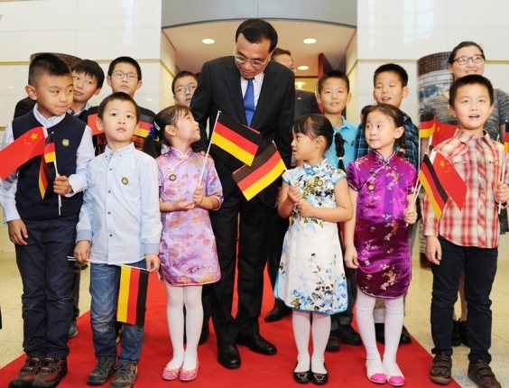克強(qiáng)總理問了問孩子們的年齡、年級,又跟學(xué)校老師聊起孩子們的學(xué)習(xí)情況,與大家一起合影,鼓勵(lì)孩子們“做中德交往的橋梁”。