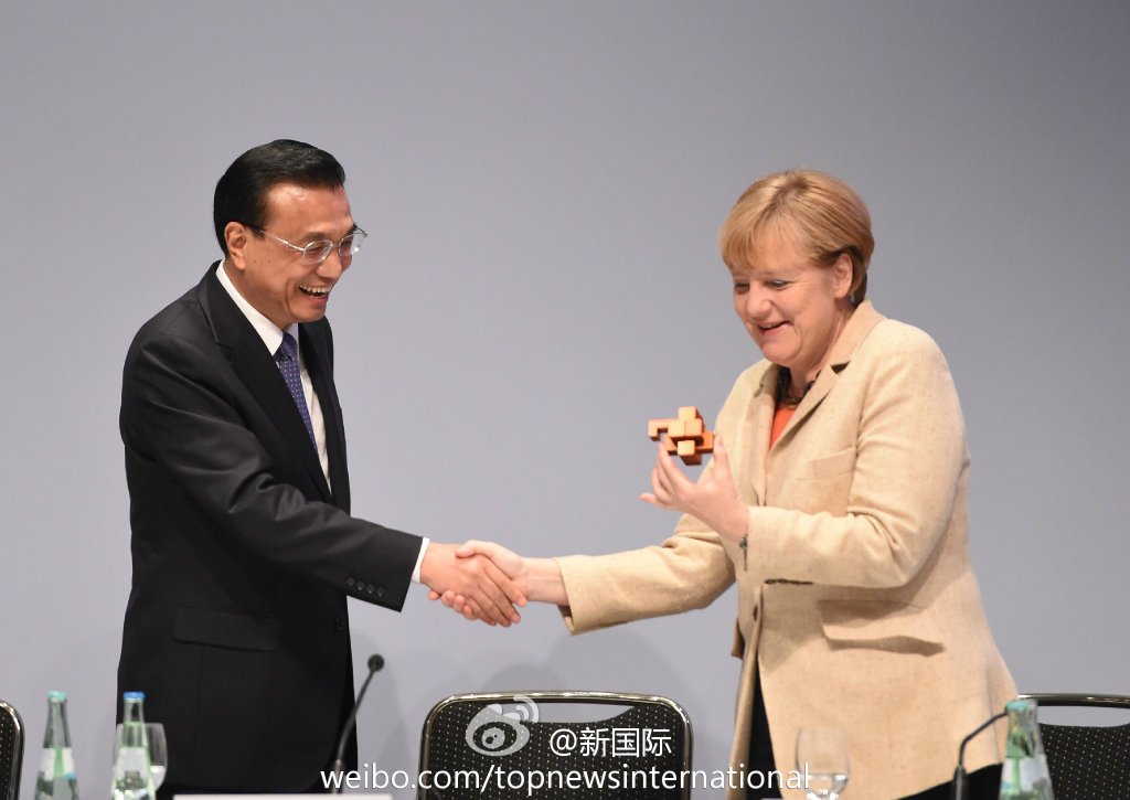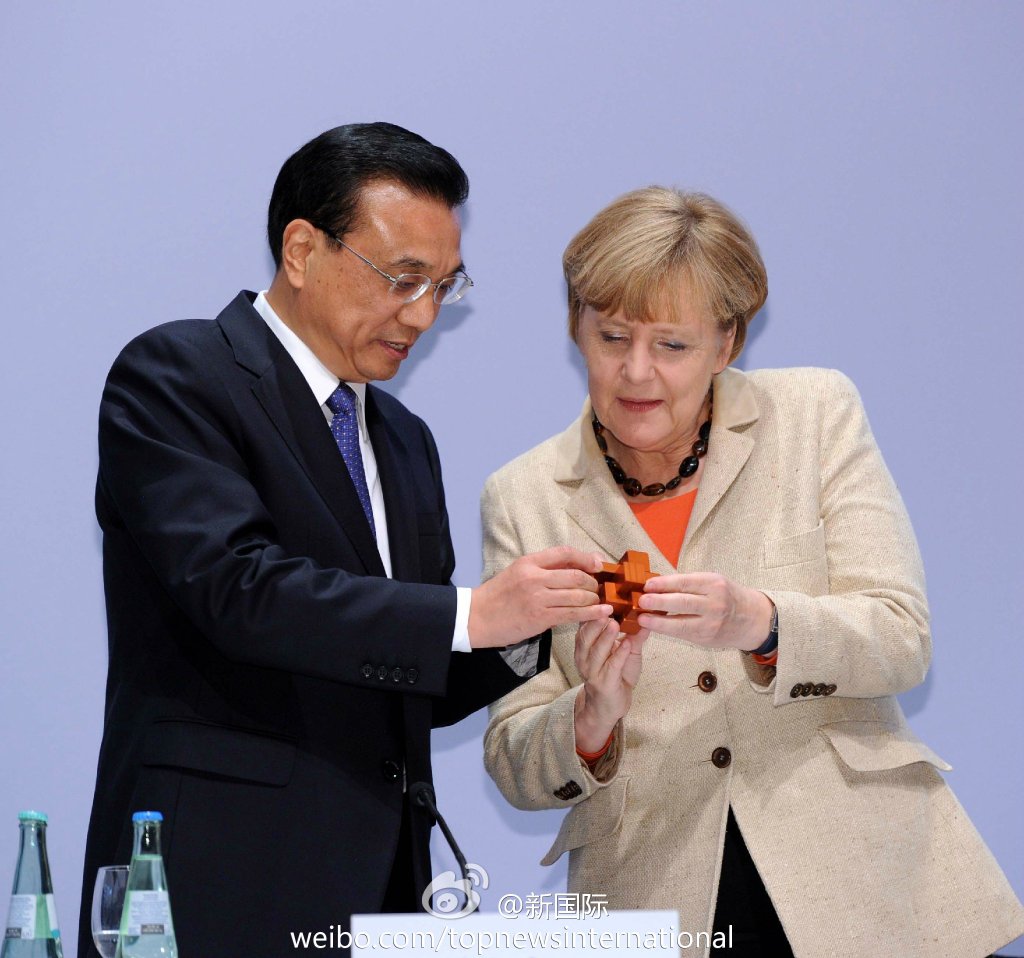 ????新華網(wǎng)北京10月11日電? 據(jù)新華社“新國際”微博報道,10日的中德經(jīng)濟技術(shù)論壇上,李克強總理將一精巧的魯班鎖送給默克爾。他說,這是天津中德職業(yè)技術(shù)學(xué)院師生共同創(chuàng)作的作品,希望我送給默克爾總理。解開魯班鎖是解決一道難題,相信中德之間的合作能不斷創(chuàng)新,共同破解世界性難題,開啟美好的未來。
