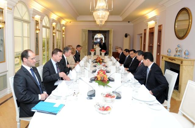 在皇家瓷器廠的博凱里尼廳里,兩國(guó)總理一起吃了今天的第二頓飯——正式歡迎宴會(huì)之外的小范圍晚宴。
