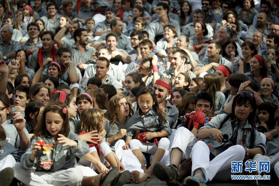 Jana和其他隊員一起在表演間隙休息。新華社巴塞羅那分社攝影師Pau Barrena 攝