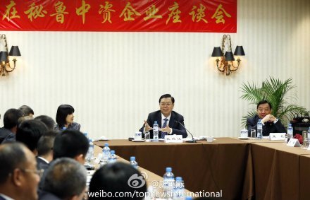 ????新華網北京11月23日電 據新華社“新華國際”客戶端報道,全國人大常委會委員長張德江22日在利馬與20家在秘魯中資企業(yè)代表座談交流。