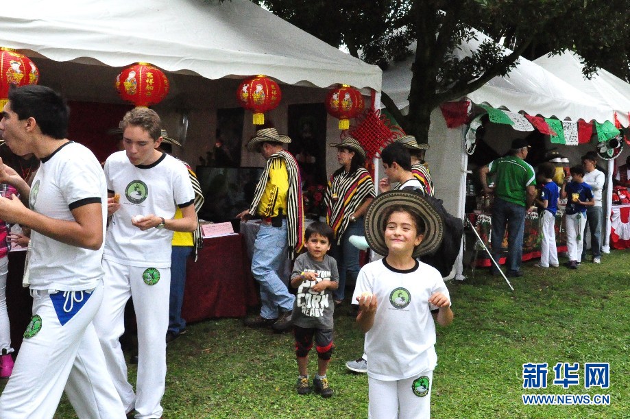 ????小朋友吃著中國的小麻團(tuán)很開心。(新華網(wǎng)記者 梁君茜 攝)