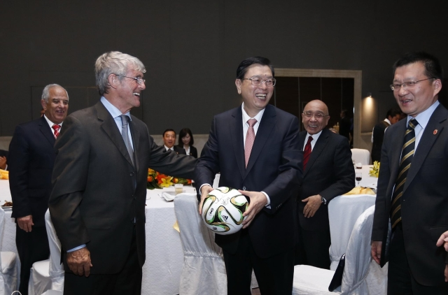????張德江稱贊米盧“你為中國足球做出了貢獻(xiàn)”。