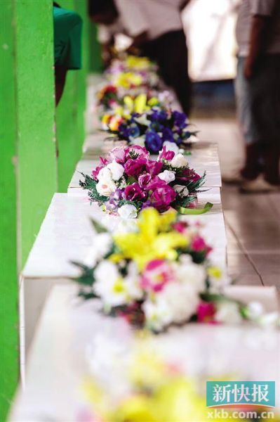 當電視播放當天軍人抬著2具遺體棺材的畫面時,餐廳里瞬間安靜下來,沒有了刀叉的碰撞聲,人們齊齊把眼光聚集在電視上,那令人心痛悲傷的畫面:蓋著鮮花的棺材,被早在泗水守候的兩隊軍人莊嚴而沉重地慢慢抬下飛機,然后輕輕地放在軍車上,在警車的開路下,徐徐地向泗水醫(yī)院駛?cè)ァ?/p>