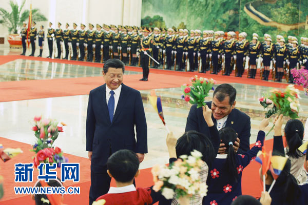 ????新華網(wǎng)北京1月7日電(記者劉華)國家主席習(xí)近平7日在人民大會堂同厄瓜多爾總統(tǒng)科雷亞舉行會談。兩國元首決定建立中厄戰(zhàn)略伙伴關(guān)系。