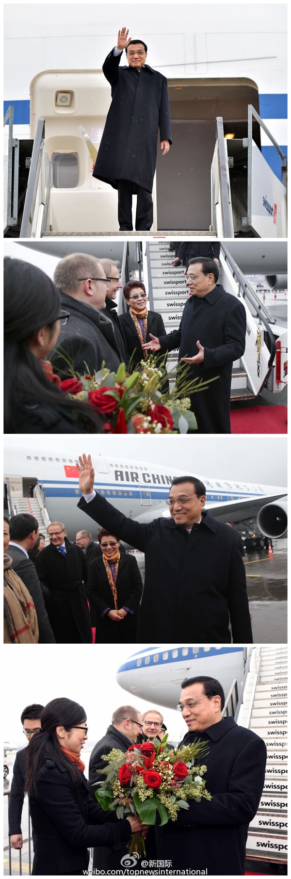 ????新華網(wǎng)北京1月20日電? 據(jù)新華社“新國際”微博報(bào)道,當(dāng)?shù)貢r(shí)間20日下午,李克強(qiáng)總理抵達(dá)瑞士,出席世界經(jīng)濟(jì)論壇年會(huì)并對(duì)瑞士進(jìn)行工作訪問。李克強(qiáng)說,我期待同各界深入交流,為維護(hù)世界和平穩(wěn)定,促進(jìn)經(jīng)濟(jì)強(qiáng)勁可持續(xù)平衡增長(zhǎng)作出努力。他說,將繼續(xù)擴(kuò)大中瑞自貿(mào)協(xié)定成果,將金融打造成兩國合作新亮點(diǎn)。