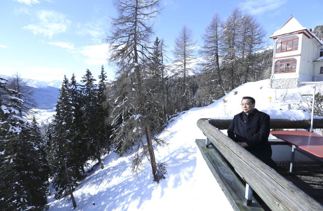 ????上了山頂,才明白咱總理為什么要來。達(dá)沃斯小鎮(zhèn)地處阿爾卑斯山脈,周圍群山環(huán)抱。海拔1800米的沙茨阿爾卑山頂視野極好,極目遠(yuǎn)眺,藍(lán)天,白云,雪峰,蒼松,周圍靜謐得似乎只剩下積雪掉落的聲音。