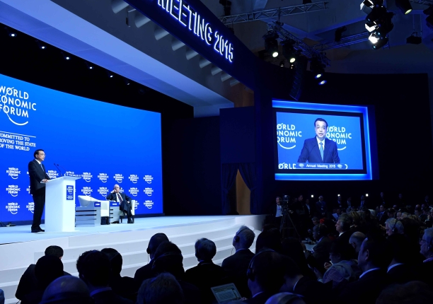 (克強(qiáng)總理在論壇全會(huì)上發(fā)表特別致辭。)