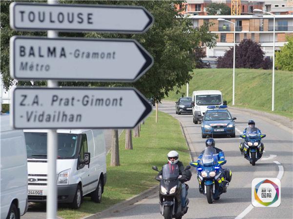 圖為8月1日,在法國(guó)圖盧茲近郊,載有疑似馬航MH370航班殘骸的白色貨車駛?cè)牒娇占夹g(shù)分析機(jī)構(gòu)。新華社發(fā)