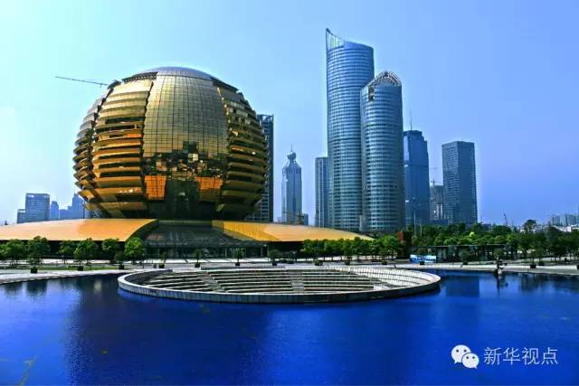 新聞中心不遠(yuǎn)處,奔流不息的錢塘江,攜千里清流,匯入廣袤的大海。在錢塘江的另一側(cè),金色球狀的杭州國際會議中心在陽光中熠熠生輝,璀璨奪目。這里就是B20峰會的主會場。