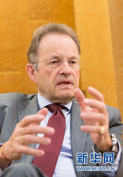 2016年12月19日,在瑞士日內(nèi)瓦萬(wàn)國(guó)宮,聯(lián)合國(guó)日內(nèi)瓦辦事處總干事穆勒接受新華社專訪?!傲?xí)近平主席的到訪,再次表明中國(guó)對(duì)聯(lián)合國(guó)多邊主義、對(duì)聯(lián)合國(guó)機(jī)構(gòu)工作和對(duì)聯(lián)合國(guó)大家庭的支持?!甭?lián)合國(guó)日內(nèi)瓦辦事處總干事邁克爾·穆勒日前在日內(nèi)瓦萬(wàn)國(guó)宮接受新華社記者專訪時(shí)這樣說(shuō)。新華社記者 徐金泉 攝