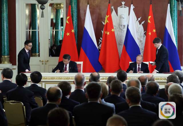 7月4日,國家主席習近平在莫斯科克里姆林宮同俄羅斯總統(tǒng)普京舉行會談。這是會談后,兩國元首共同出席簽字儀式。新華社記者 謝環(huán)馳 攝