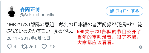 日電視臺(tái)自揭731部隊(duì)罪行 日網(wǎng)友:比妖魔還恐怖