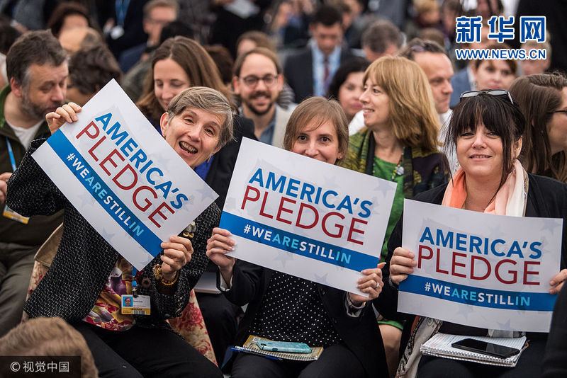 當(dāng)?shù)貢r間2017年11月11日,德國波恩,波恩氣候大會召開,“美國會館”內(nèi)景。雖然美國宣布退出了《巴黎協(xié)定》,但美國氣候談判代表仍出席了波恩的會議。美國除聯(lián)邦外的各級政府均派代表參加波恩會議,且主要目的就是表明他們?nèi)詫⒅铝τ趦冬F(xiàn)美國在巴黎做出的承諾。在美國國內(nèi),成千上萬的市長、州長、部落首領(lǐng)、企業(yè)高管以及普通美國人都在努力降低溫室氣體排放。這個名為“我們?nèi)栽趫?jiān)守(We Are Still In)”的聯(lián)盟的成員代表了美國一半以上的人口以及54%的經(jīng)濟(jì)產(chǎn)出?!拔覀?nèi)栽趫?jiān)守”( We Are Still In)、“美國氣候聯(lián)盟”、“氣候市長”(Climate Mayors)和其它諸多計(jì)劃向全世界傳遞了這樣一個信息,即美國仍然有很多人正致力于擁有宏偉目標(biāo)的氣候行動之中,而“美國的承諾”(America’s Pledge)正在尋求如何量化并傳播這些承諾。(圖片來源:視覺中國)