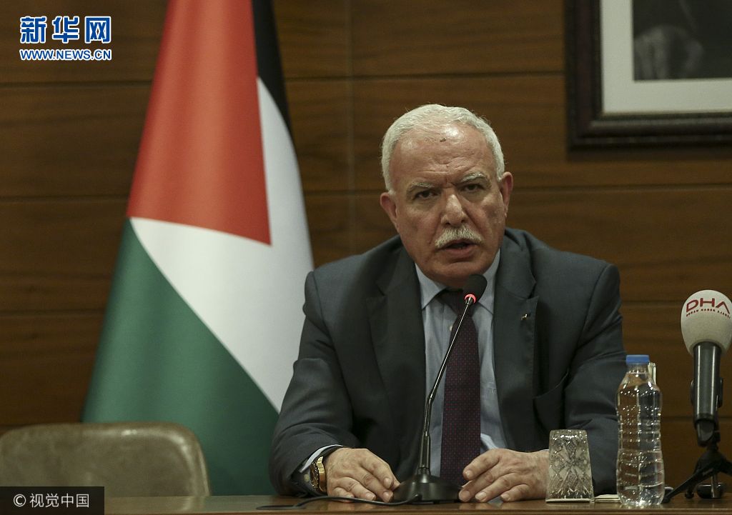 當(dāng)?shù)貢r(shí)間2017年12月20日,土耳其伊斯坦布爾,巴勒斯坦外長(zhǎng)馬勒基出席新聞發(fā)布會(huì),呼吁聯(lián)合國(guó)大會(huì)在21日舉行的緊急會(huì)議上認(rèn)定美國(guó)承認(rèn)耶路撒冷為以色列首都的決定“無(wú)效”。(圖片來(lái)源:視覺(jué)中國(guó))