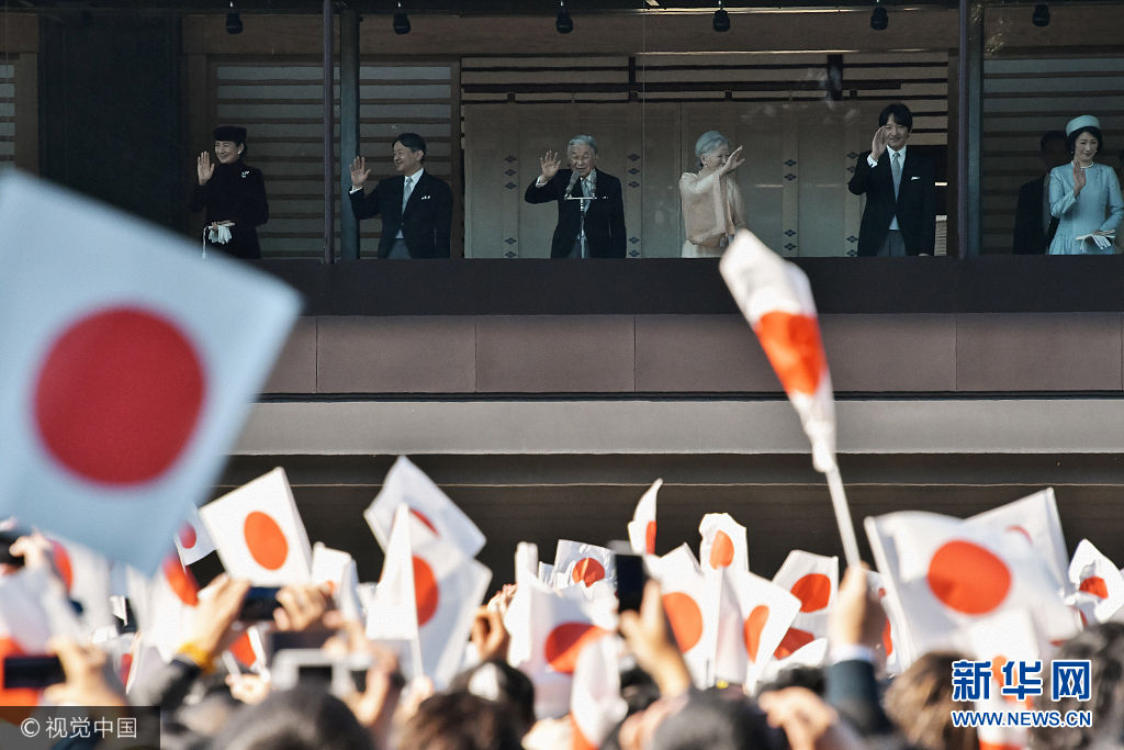 當(dāng)?shù)貢r(shí)間2017年12月23日,日本東京,日本明仁天皇慶祝84歲生日,在皇宮的陽臺(tái)上向祝福者揮手致意。(圖片來源:視覺中國)