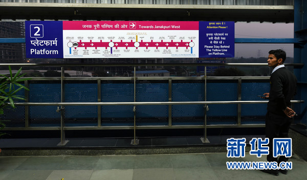 12月25日,在印度首都新德里洋紅色地鐵線,一名工作人員在站牌下職守。當(dāng)日,連接新德里及其衛(wèi)星城諾伊達(dá)(Noida)之間的洋紅色地鐵線建成通車。這條線路全長12.64公里。德里地鐵公司計(jì)劃未來提高這條地鐵線路自動(dòng)化水平,以“無人值守模式”運(yùn)行。目前,新德里運(yùn)營地鐵線路共有7條,分別用顏色命名,包括紅色、黃色、藍(lán)色、綠色、橙色、紫羅蘭和洋紅色。新華網(wǎng)發(fā) (張迺杰 攝)