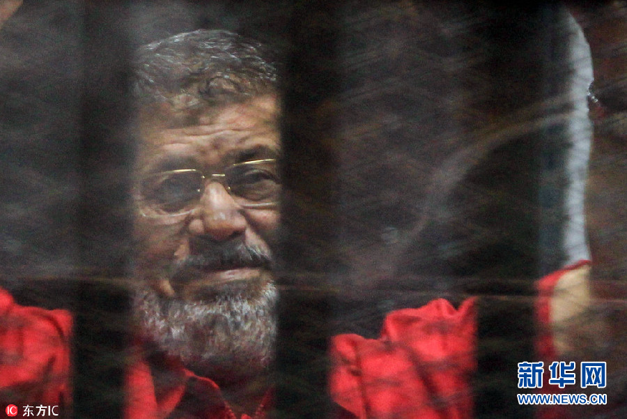 當(dāng)?shù)貢r(shí)間2016年6月18日,埃及開(kāi)羅,埃及前總統(tǒng)穆?tīng)栁髟讵z中。據(jù)俄羅斯衛(wèi)星網(wǎng)2017年12月31日?qǐng)?bào)道,埃及前總統(tǒng)穆?tīng)栁饕蛭耆璺ㄍケ婚_(kāi)羅刑事法庭判處3年有期徒刑。(圖片來(lái)源:東方IC)