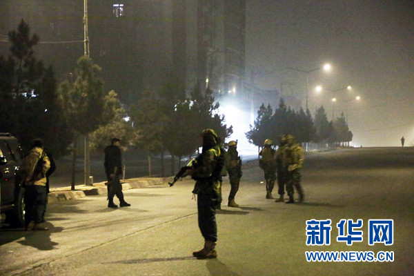 1月20日,在阿富汗首都喀布爾,安全人員在喀布爾洲際酒店附近警戒。 新華社發(fā)(拉赫馬特?cái)z)
