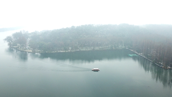 航拍雪中西湖