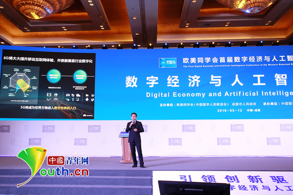 5月12日,歐美同學會首屆數(shù)字經(jīng)濟與人工智能大會“數(shù)字經(jīng)濟與人工智能現(xiàn)狀與趨勢”論壇上,華為5G產(chǎn)品線副總裁杜葉青發(fā)表演講。中國青年網(wǎng)記者 馬珊 攝