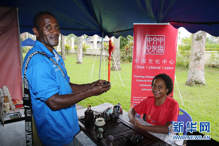 一位斐濟青年正準備品嘗中國名茶。 新華網記者張永興 攝