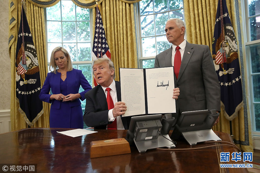 6月20日,美國華盛頓,美國總統(tǒng)特朗普撤回了此前為打擊非法移民,進而導(dǎo)致大批兒童與父母強制分離的“零容忍”政策。(圖片來源:視覺中國)