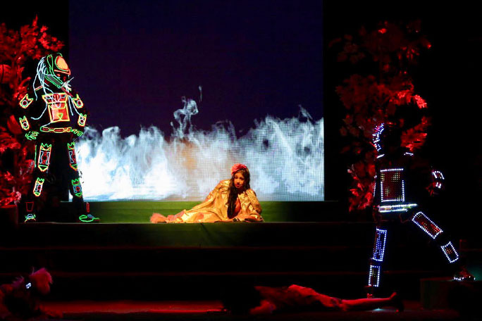 這部話劇講述了一個名叫丁丁的小女孩的奇幻冒險故事。丁丁遇見了四種神秘的生物,在這些神秘生物的帶領(lǐng)下,她經(jīng)歷了一次奇幻之旅,最終還拯救了一位遭綁架的小仙女。