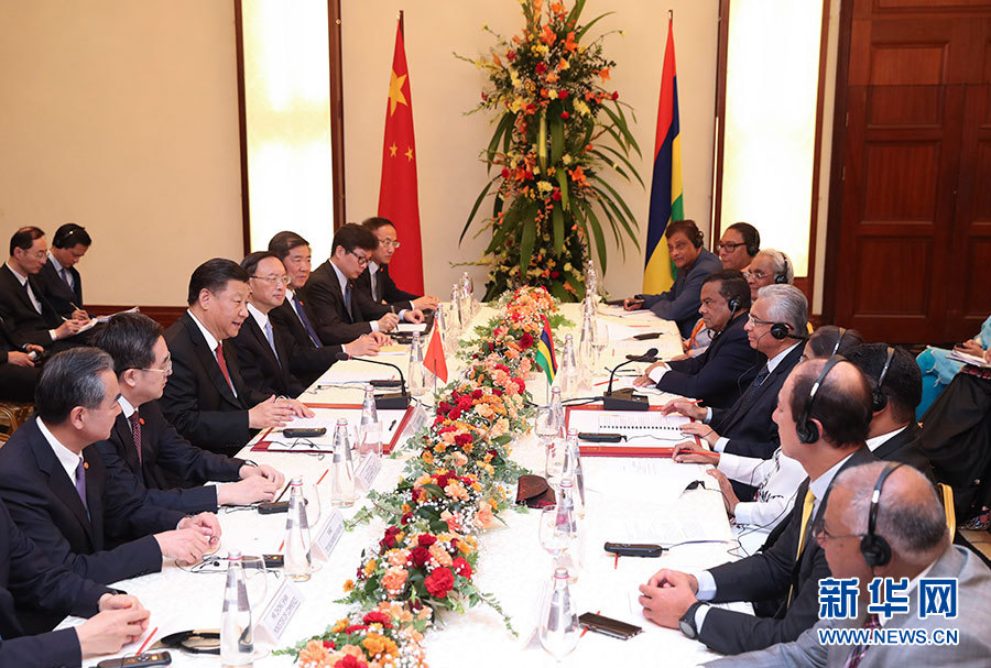 習近平強調,中毛都是發(fā)展中國家,有著相似的發(fā)展經(jīng)歷和發(fā)展任務。當前,中毛關系發(fā)展面臨新的重要機遇。我們要保持高層交往勢頭,加強政府部門、立法機構、地方等往來,繼續(xù)在涉及彼此核心利益和重大關切問題上相互理解和支持。要挖掘務實合作潛力,提高雙方貿易和投資自由化便利化水平,早日商簽中毛自由貿易協(xié)定,發(fā)揮毛里求斯參與共建“一帶一路”的獨特區(qū)位優(yōu)勢,加強溝通對接,深化廣泛領域合作。要加強人文交流,促進相互了解。中方愿同毛方加強氣候變化南南合作,密切在國際事務中協(xié)作,維護發(fā)展中國家共同利益。