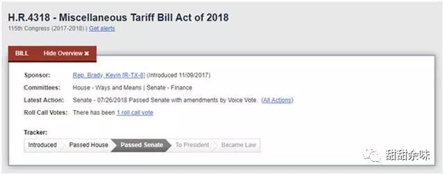 1.從法案本身來看,據(jù)美國國會官網(wǎng)顯示,其最早提交到眾議院的時間是2017年9月11日(對應(yīng)法案流程的第一步“Introduced”);下一節(jié)點是2018年1月16日,應(yīng)該也就是眾議院進(jìn)行討論并通過的日期,此后就是1月17日,從這一天起,處理者由眾議院變成了參議院(對應(yīng)流程的第二步“Passed House”);再下一個節(jié)點就是2018年7月26日了。