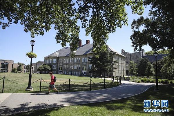 7月9日,在美國(guó)賓夕法尼亞州切斯特縣,學(xué)生走在西切斯特大學(xué)校園里。新華社記者王迎攝