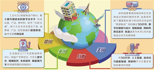 隨著智能制造、物聯(lián)網(wǎng)及3D打印等先進制造技術(shù)不斷發(fā)展和普及,其對經(jīng)濟的帶動促進作用愈發(fā)明顯。全球主要經(jīng)濟體正在爭先搶占這些先進制造技術(shù)的科技制高點,并紛紛在通過數(shù)字化、智能化改造傳統(tǒng)制造業(yè)的同時,結(jié)合本國產(chǎn)業(yè)特色,聚焦優(yōu)勢領(lǐng)域,打造先進制造業(yè)王牌。在這一形勢下,美、日、歐洲等國家和地區(qū)在先進制造業(yè)領(lǐng)域的標準設定、技術(shù)研發(fā)、產(chǎn)品創(chuàng)新、市場轉(zhuǎn)化方面都制定了各具特色的路線圖。