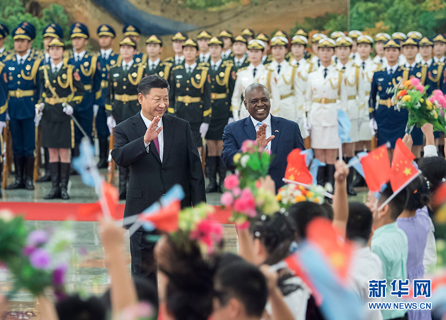 8月31日,國家主席習(xí)近平在北京人民大會堂同博茨瓦納總統(tǒng)馬西西舉行會談。這是會談前,習(xí)近平在人民大會堂北大廳為馬西西舉行歡迎儀式。 新華社記者 李濤 攝