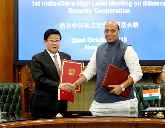 10月22日,中國與印度首次執(zhí)法安全高級別會(huì)晤在新德里舉行。國務(wù)委員、公安部部長趙克志與印度內(nèi)政部部長辛格共同簽署了《中華人民共和國公安部與印度共和國內(nèi)政部合作協(xié)議》。