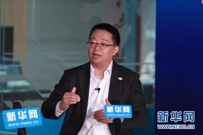 圖為綠地商貿(mào)集團董事長、總經(jīng)理薛迎杰接受新華網(wǎng)獨家專訪。新華網(wǎng)嚴曉瑜攝