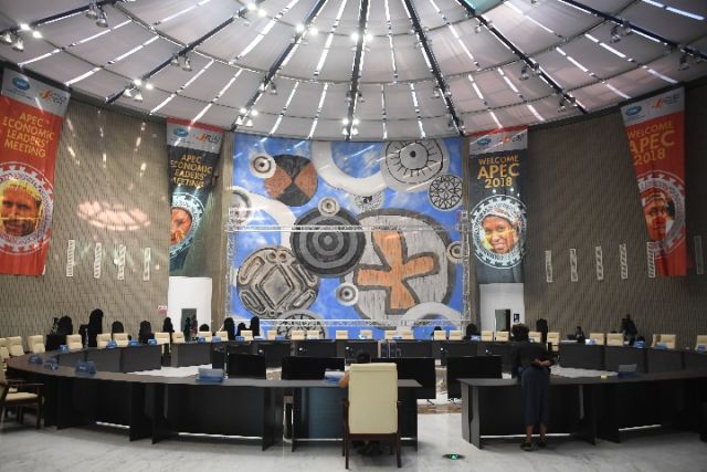 這是11月11日拍攝的巴新首都莫爾茲比港APEC大廈。(新華社記者白雪飛攝)