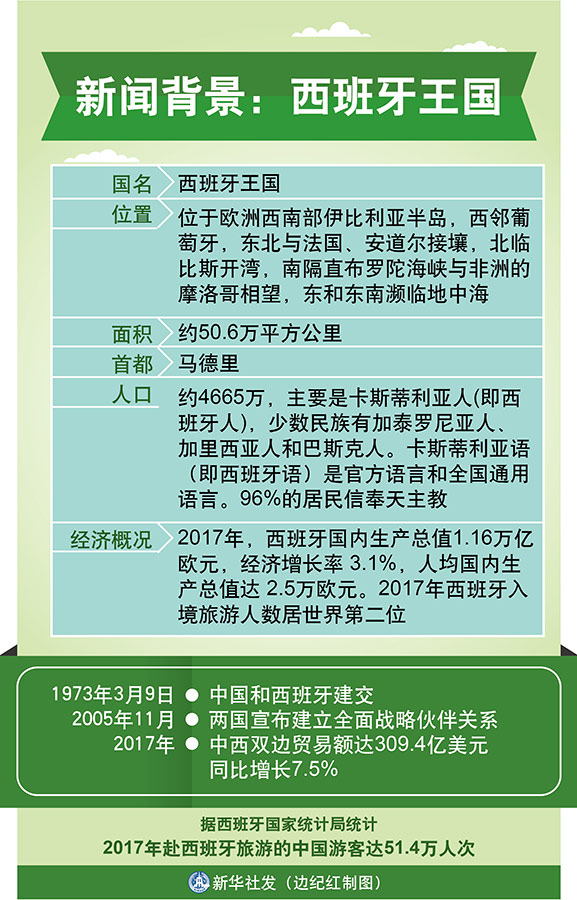近年來,中西經(jīng)貿(mào)合作持續(xù)發(fā)展。西班牙是中國在歐盟內(nèi)第六大貿(mào)易伙伴,中國是西班牙在歐盟外第一大貿(mào)易伙伴。2017年,雙邊貿(mào)易額達309.4億美元,同比增長7.5%。據(jù)西班牙國家統(tǒng)計局統(tǒng)計,2017年赴西班牙旅游的中國游客達51.4萬人次。